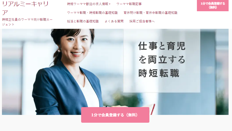 リアルミーキャリアは転職後すぐに時短正社員として勤務できるため、仕事と育児の両立を目指す女性にぴったりのサイトです。